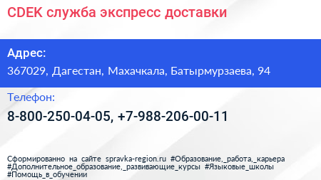 CDEK, служба экспресс-доставки по адресу 367029, Дагестан, Махачкала, Батырмурзаева, 94 в дальнейшем Организация, размещена в следующих категориях: