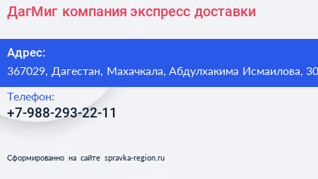 ДагМиг, компания экспресс-доставки по адресу 367029, Дагестан, Махачкала, Абдулхакима Исмаилова, 30 в дальнейшем Организация, размещена в следующих категориях: