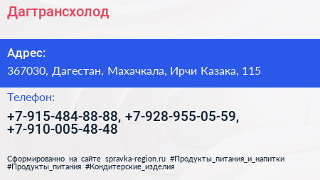 Дагтрансхолод по адресу 367030, Дагестан, Махачкала, Ирчи Казака, 115 в дальнейшем Организация, размещена в следующих категориях: