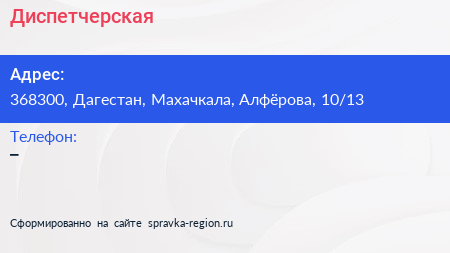Диспетчерская по адресу 368300, Дагестан, Махачкала, Алфёрова, 10/13 в дальнейшем Организация, размещена в следующих категориях: