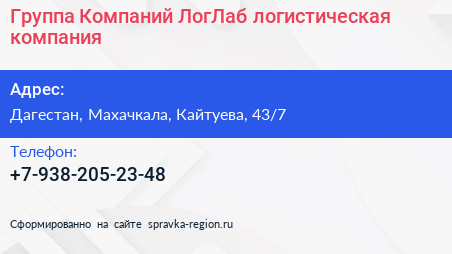 Группа Компаний ЛогЛаб, логистическая компания по адресу Дагестан, Махачкала, Кайтуева, 43/7 в дальнейшем Организация, размещена в следующих категориях: