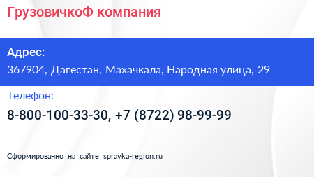 ГрузовичкоФ, компания по адресу 367904, Дагестан, Махачкала, Народная улица, 29 в дальнейшем Организация, размещена в следующих категориях: