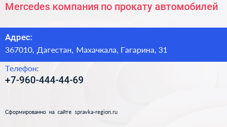 Mercedes, компания по прокату автомобилей по адресу 367010, Дагестан, Махачкала, Гагарина, 31 в дальнейшем Организация, размещена в следующих категориях: