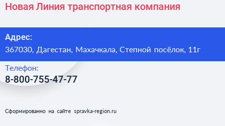 Новая Линия, транспортная компания по адресу 367030, Дагестан, Махачкала, Степной посёлок, 11г в дальнейшем Организация, размещена в следующих категориях: