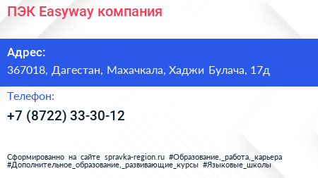ПЭК Easyway, компания по адресу 367018, Дагестан, Махачкала, Хаджи Булача, 17д в дальнейшем Организация, размещена в следующих категориях:
