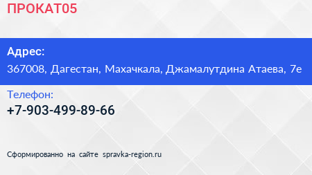 ПРОКАТ05 по адресу 367008, Дагестан, Махачкала, Джамалутдина Атаева, 7е в дальнейшем Организация, размещена в следующих категориях: