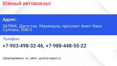Южный, автовокзал по адресу 367904, Дагестан, Махачкала, проспект Амет-Хана Султана, 208/2 в дальнейшем Организация, размещена в следующих категориях: