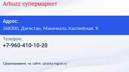 Arbuzz, супермаркет по адресу 368300, Дагестан, Махачкала, Каспийская, 9 в дальнейшем Организация, размещена в следующих категориях: