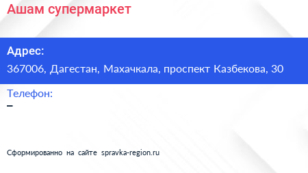 Ашам, супермаркет по адресу 367006, Дагестан, Махачкала, проспект Казбекова, 30 в дальнейшем Организация, размещена в следующих категориях: