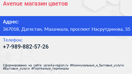 Avenue, магазин цветов по адресу 367018, Дагестан, Махачкала, проспект Насрутдинова, 35 в дальнейшем Организация, размещена в следующих категориях:
