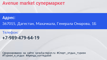 Avenue market, супермаркет по адресу 367015, Дагестан, Махачкала, Генерала Омарова, 1Б в дальнейшем Организация, размещена в следующих категориях: