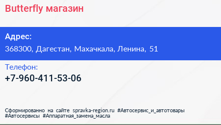 Butterfly, магазин по адресу 368300, Дагестан, Махачкала, Ленина, 51 в дальнейшем Организация, размещена в следующих категориях: