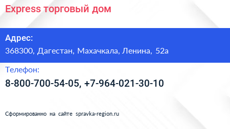 Express, торговый дом по адресу 368300, Дагестан, Махачкала, Ленина, 52а в дальнейшем Организация, размещена в следующих категориях: