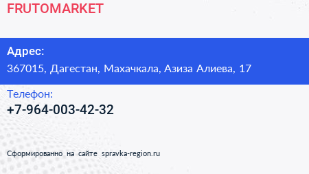 FRUTOMARKET по адресу 367015, Дагестан, Махачкала, Азиза Алиева, 17 в дальнейшем Организация, размещена в следующих категориях: