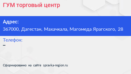 ГУМ, торговый центр по адресу 367000, Дагестан, Махачкала, Магомеда Ярагского, 28 в дальнейшем Организация, размещена в следующих категориях: