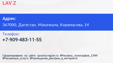LAV`Z по адресу 367000, Дагестан, Махачкала, Коркмасова, 14 в дальнейшем Организация, размещена в следующих категориях: