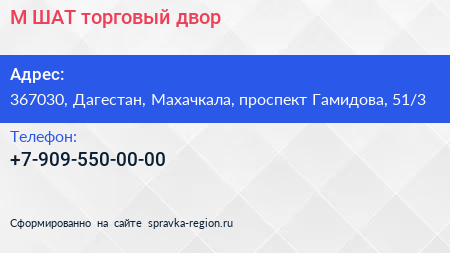 М-ШАТ, торговый двор по адресу 367030, Дагестан, Махачкала, проспект Гамидова, 51/3 в дальнейшем Организация, размещена в следующих категориях: