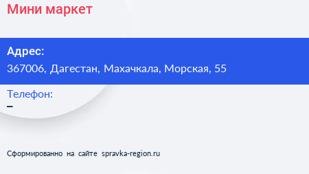 Мини-маркет по адресу 367006, Дагестан, Махачкала, Морская, 55 в дальнейшем Организация, размещена в следующих категориях: