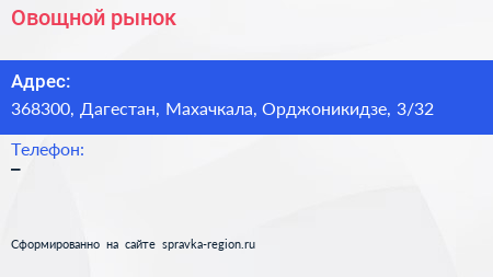 Овощной рынок по адресу 368300, Дагестан, Махачкала, Орджоникидзе, 3/32 в дальнейшем Организация, размещена в следующих категориях: