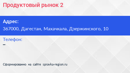 Продуктовый рынок №2 по адресу 367000, Дагестан, Махачкала, Дзержинского, 10 в дальнейшем Организация, размещена в следующих категориях: