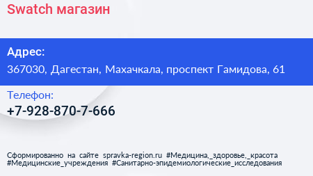 Swatch, магазин по адресу 367030, Дагестан, Махачкала, проспект Гамидова, 61 в дальнейшем Организация, размещена в следующих категориях: