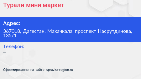 Турали, мини-маркет по адресу 367018, Дагестан, Махачкала, проспект Насрутдинова, 135/1 в дальнейшем Организация, размещена в следующих категориях: