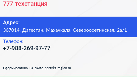 777, техстанция по адресу 367014, Дагестан, Махачкала, Североосетинская, 2а/1 в дальнейшем Организация, размещена в следующих категориях: