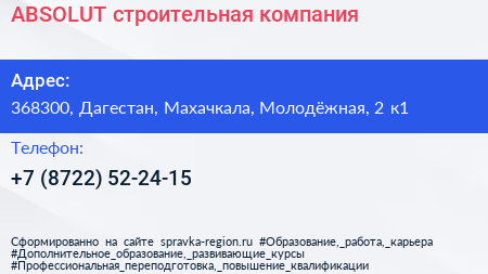 ABSOLUT, строительная компания по адресу 368300, Дагестан, Махачкала, Молодёжная, 2 к1 в дальнейшем Организация, размещена в следующих категориях:
