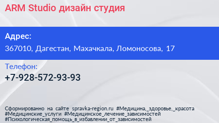 ARM Studio, дизайн-студия по адресу 367010, Дагестан, Махачкала, Ломоносова, 17 в дальнейшем Организация, размещена в следующих категориях: