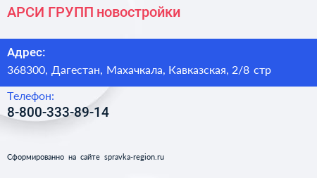 АРСИ ГРУПП, новостройки по адресу 368300, Дагестан, Махачкала, Кавказская, 2/8 стр в дальнейшем Организация, размещена в следующих категориях: