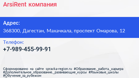 ArsiRent, компания по адресу 368300, Дагестан, Махачкала, проспект Омарова, 12 в дальнейшем Организация, размещена в следующих категориях: