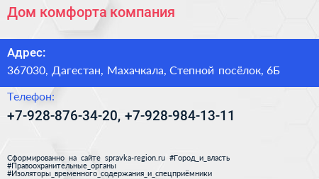 Дом комфорта, компания по адресу 367030, Дагестан, Махачкала, Степной посёлок, 6Б в дальнейшем Организация, размещена в следующих категориях: