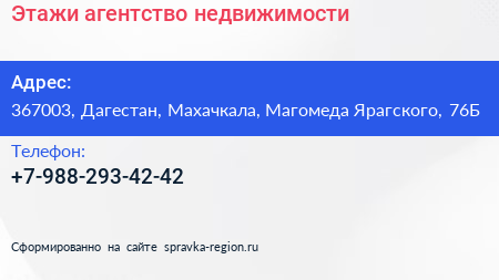 Этажи, агентство недвижимости по адресу 367003, Дагестан, Махачкала, Магомеда Ярагского, 76Б в дальнейшем Организация, размещена в следующих категориях: