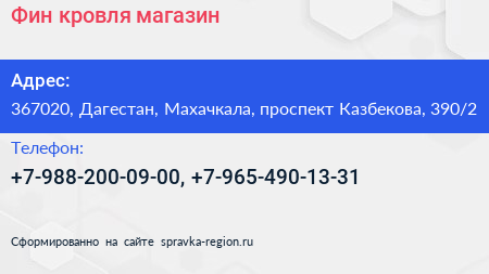 Фин кровля, магазин по адресу 367020, Дагестан, Махачкала, проспект Казбекова, 390/2 в дальнейшем Организация, размещена в следующих категориях: