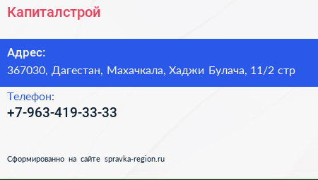 Капиталстрой по адресу 367030, Дагестан, Махачкала, Хаджи Булача, 11/2 стр в дальнейшем Организация, размещена в следующих категориях: