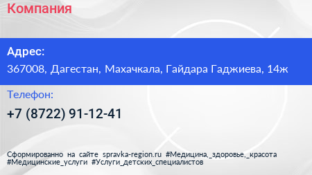 Компания по адресу 367008, Дагестан, Махачкала, Гайдара Гаджиева, 14ж в дальнейшем Организация, размещена в следующих категориях: