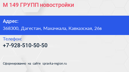 М-149 ГРУПП, новостройки по адресу 368300, Дагестан, Махачкала, Кавказская, 26в в дальнейшем Организация, размещена в следующих категориях: