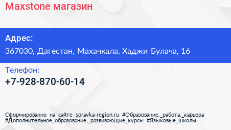 Maxstone, магазин по адресу 367030, Дагестан, Махачкала, Хаджи Булача, 16 в дальнейшем Организация, размещена в следующих категориях: