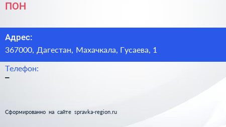 ПОН по адресу 367000, Дагестан, Махачкала, Гусаева, 1 в дальнейшем Организация, размещена в следующих категориях: