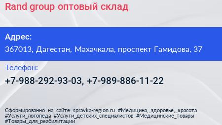 Rand group, оптовый склад по адресу 367013, Дагестан, Махачкала, проспект Гамидова, 37 в дальнейшем Организация, размещена в следующих категориях: