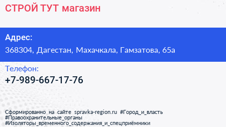 СТРОЙ ТУТ, магазин по адресу 368304, Дагестан, Махачкала, Гамзатова, 65а в дальнейшем Организация, размещена в следующих категориях: