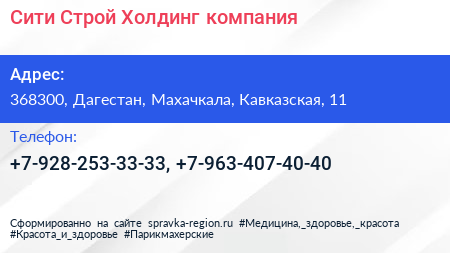 Сити Строй Холдинг, компания по адресу 368300, Дагестан, Махачкала, Кавказская, 11 в дальнейшем Организация, размещена в следующих категориях: