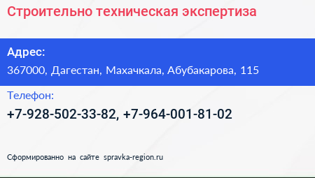 Строительно-техническая экспертиза по адресу 367000, Дагестан, Махачкала, Абубакарова, 115 в дальнейшем Организация, размещена в следующих категориях: