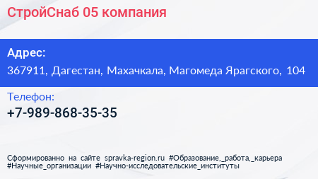 СтройСнаб-05, компания по адресу 367911, Дагестан, Махачкала, Магомеда Ярагского, 104 в дальнейшем Организация, размещена в следующих категориях: