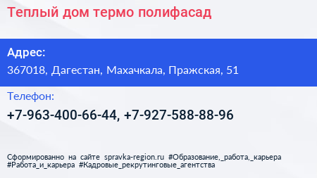 Теплый дом термо полифасад по адресу 367018, Дагестан, Махачкала, Пражская, 51 в дальнейшем Организация, размещена в следующих категориях: