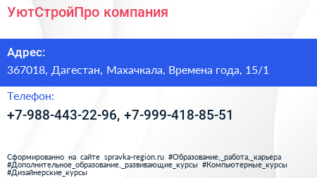 УютСтройПро, компания по адресу 367018, Дагестан, Махачкала, Времена года, 15/1 в дальнейшем Организация, размещена в следующих категориях: