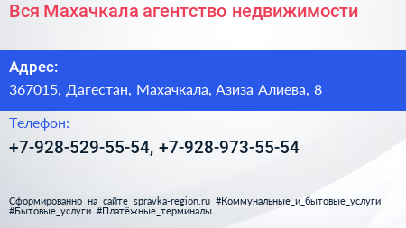Вся Махачкала, агентство недвижимости по адресу 367015, Дагестан, Махачкала, Азиза Алиева, 8 в дальнейшем Организация, размещена в следующих категориях: