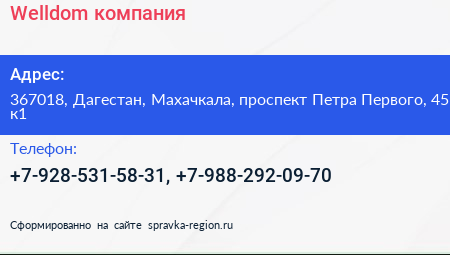 Welldom, компания по адресу 367018, Дагестан, Махачкала, проспект Петра Первого, 45 к1 в дальнейшем Организация, размещена в следующих категориях: