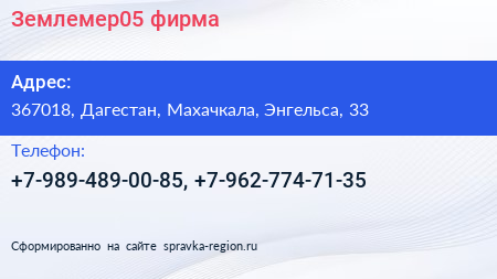 Землемер05, фирма по адресу 367018, Дагестан, Махачкала, Энгельса, 33 в дальнейшем Организация, размещена в следующих категориях: