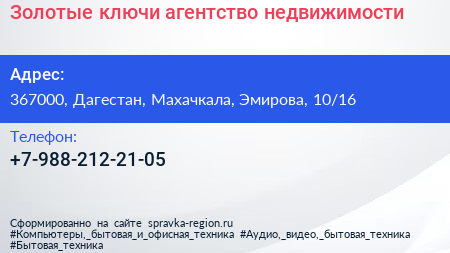Золотые ключи, агентство недвижимости по адресу 367000, Дагестан, Махачкала, Эмирова, 10/16 в дальнейшем Организация, размещена в следующих категориях: